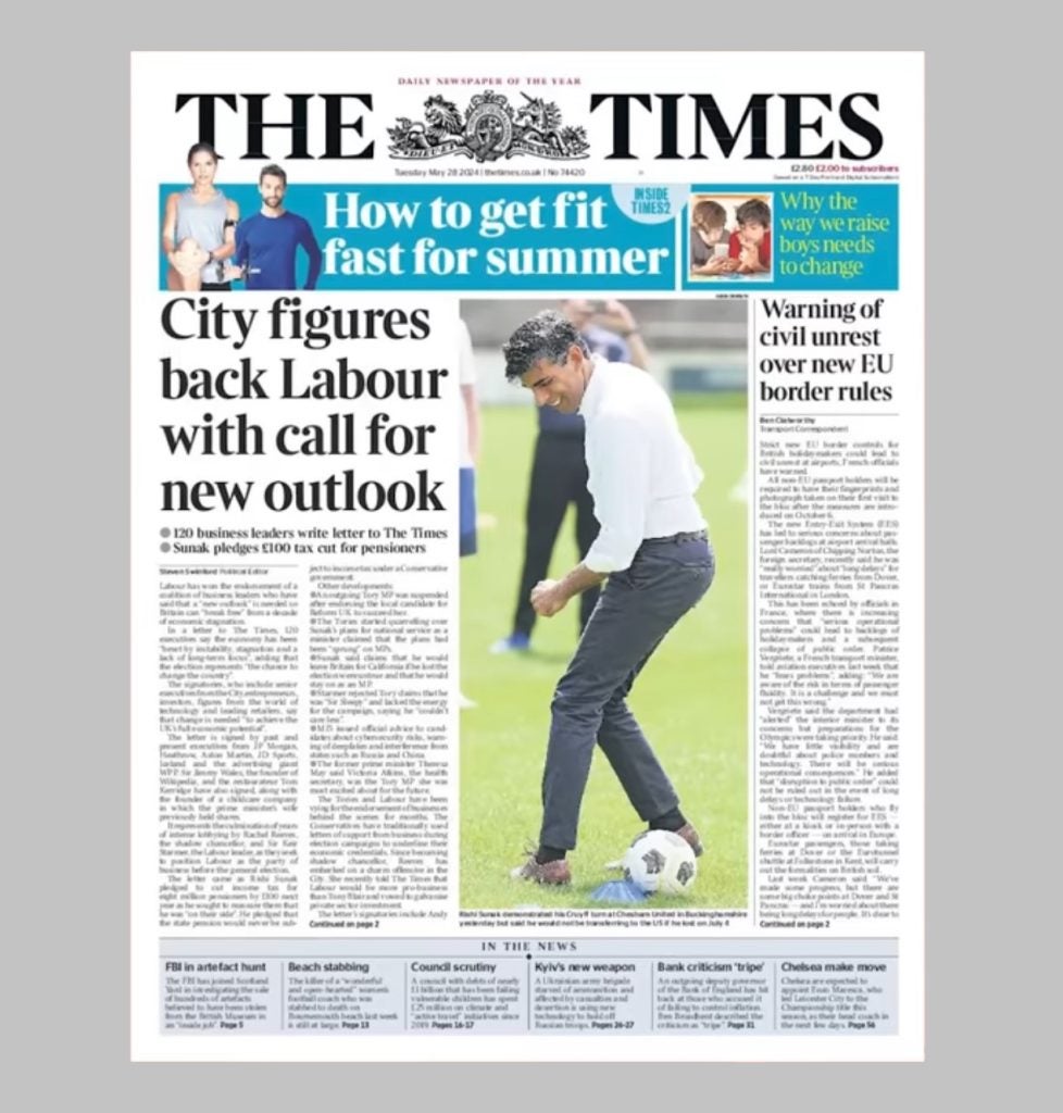 The 28 May edition of The Times featured a front-page article highlighting a letter signed by 121 founders, chief executives, and former leaders across diverse sectors such as financial services, retail, and manufacturing.