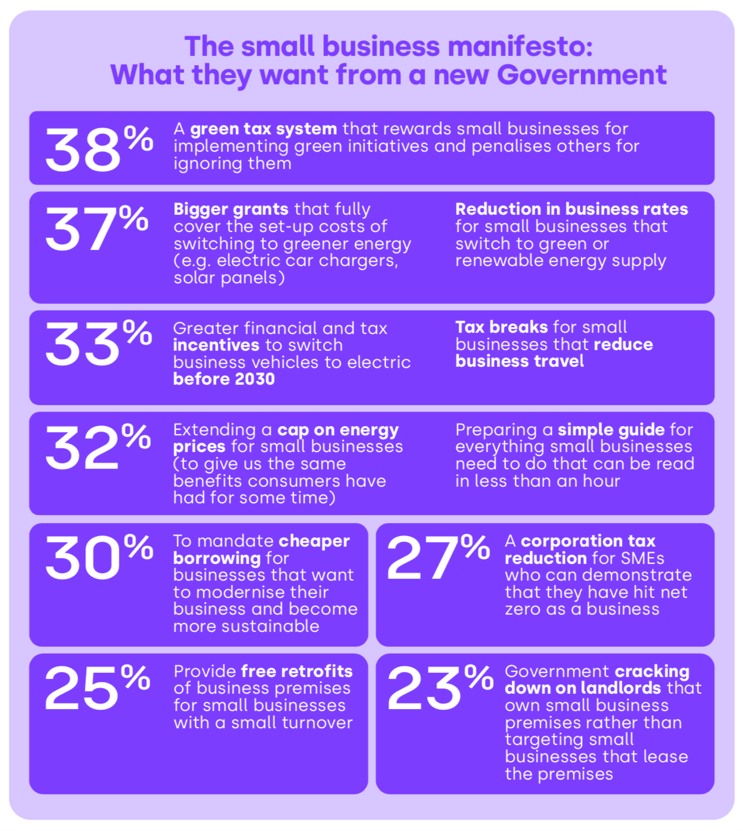 According to the research, conducted by YouGov in February, small businesses are calling for a green tax system, with 38% advocating for tax incentives that reward businesses for implementing green initiatives and penalising those that do not.