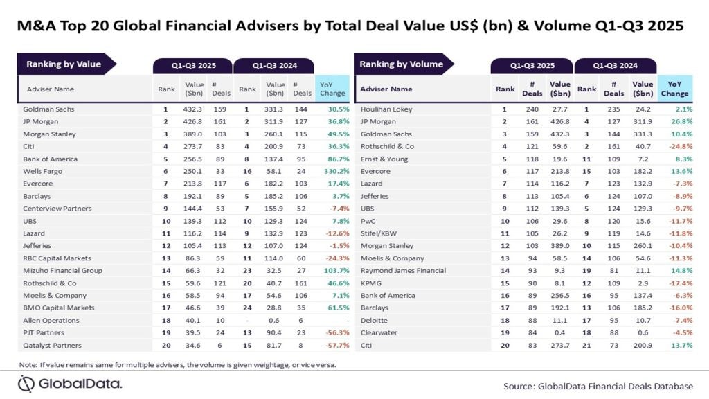 Goldman Sachs and Houlihan Lokey lead in M&A advisory for Q1-Q3 2025