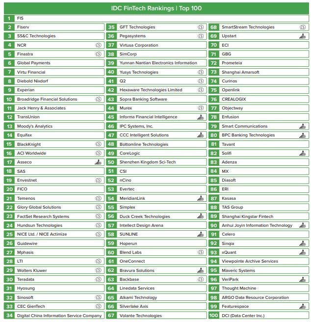 “The providers featured in the annual FinTech Rankings supply the technological backbone of the financial services industry, an industry in which IDC Financial Insights forecasts worldwide spending on IT to be US$590 billion by 2025,” the group said in a statement.