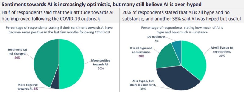 That said, many businesses are still wary of the AI hype, with 38% of those surveyed saying AI was useful if hyped, and 20% believing AI to be all hype and no substance whatsoever.