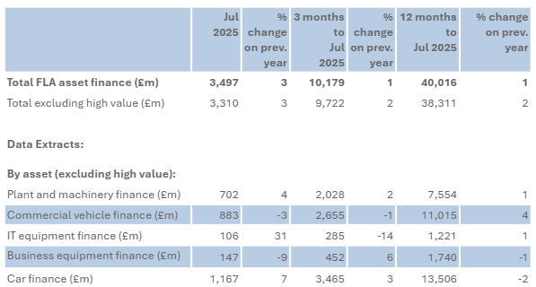 In July 2025, FLA members provided a total of £3.49bn ($4.73bn) in asset finance.