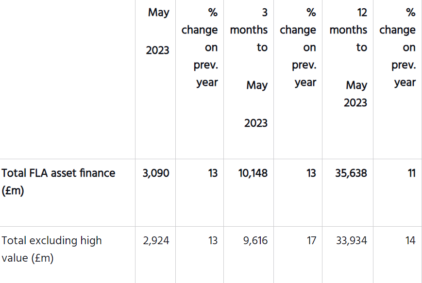 The business new car finance and commercial vehicle finance sectors reported new business up in May by 60% and 7% respectively, compared with the same month in 2022. The plant and machinery finance sector reported a fall in new business of 10% over the same period.
