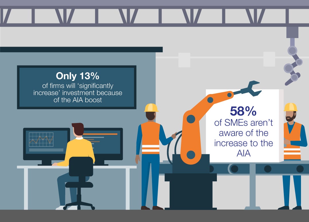 A key finding of the survey of 900 SME owners across the UK established that well over half (58%) of SMEs aren’t aware that the Government had made the increase to the AIA, while only a minority of companies (13%) are planning to significantly increase investment in 2019 as a result of the rise.