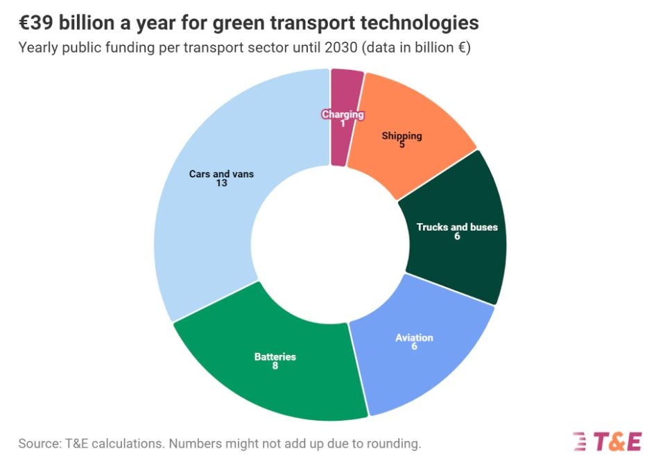 Europe will need to invest €39bn in public funds each year to maintain its competitiveness in green transport technology, according to a recent report by the environmental group Transport & Environment (T&E).