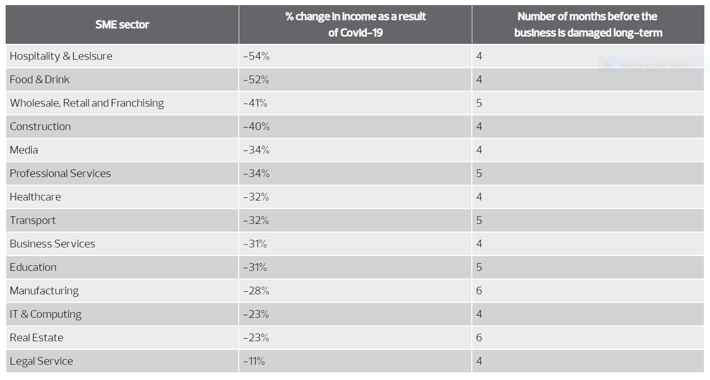 All sectors in the UK have faced massive challenges, with the average SME losing over a third (34%) of monthly business income as a result of the crisis.