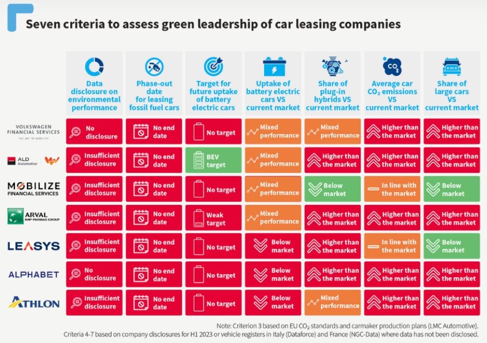 No leasing company has committed to fully phasing out fossil fuel cars. In contrast, many carmakers and large corporations have already pledged to go 100% electric by 2030.