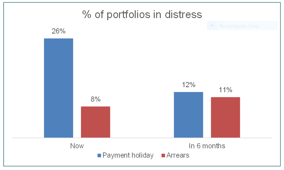 On average, respondents indicated that 34% of their portfolio was either in a payment holiday or an arrears position.