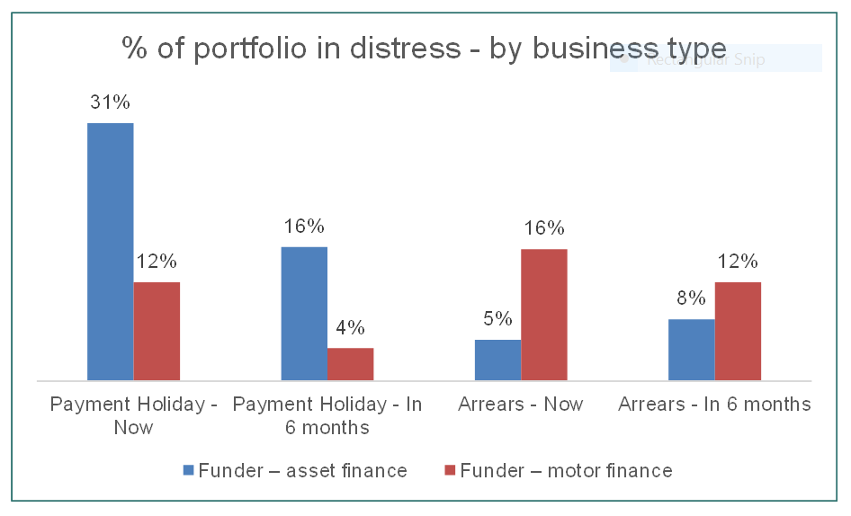 Asset finance providers reported on average 31% of portfolios receiving a payment holiday, expected to reduce to 16% in six months. During the same period, asset finance arrears are expected to rise from 5% to 8%.