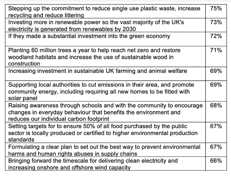 These include delays in phasing out petrol and diesel cars and shifts in renewable energy commitments. The document also examines small businesses’ concerns, ranging from limited access to grants and funding for green projects to a perceived lack of prioritization of environmental issues by major UK political parties.