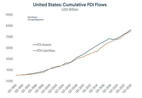 Granville’s analysis focuses exclusively on FDI flows. Historically, FDI “inflows” (investment into the US) and “outflows” (US investment abroad) have remained balanced, he observed, but Trump’s tax cuts may disrupt this balance in favour of increased domestic investment. Granville suggested that a tax rate cut could shift the FDI balance “toward inward vs outbound FDI,” encouraging US-based reinvestment.